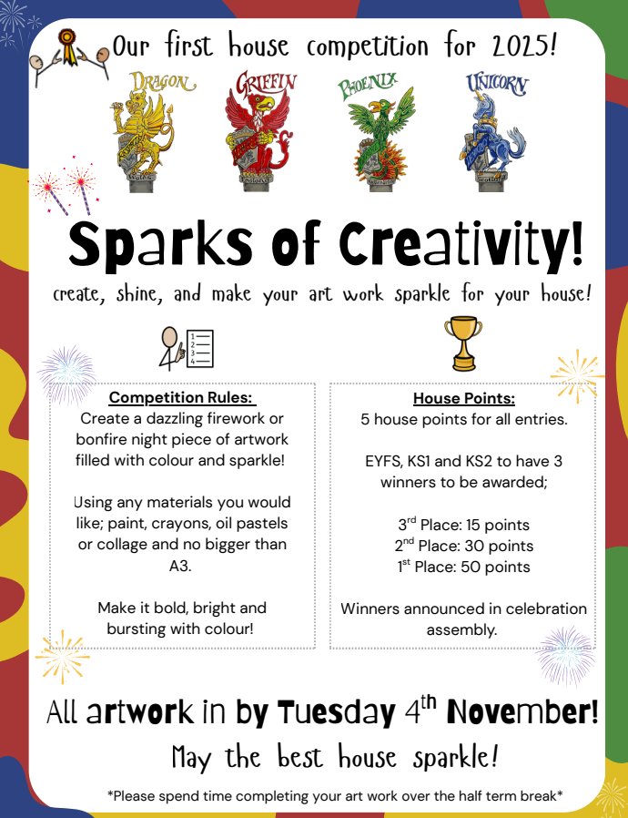 We have four houses to which children are assigned when they enter Reception: Dragon, Griffin, Phoenix and Unicorn. The house names were voted for by pupils in 2017.